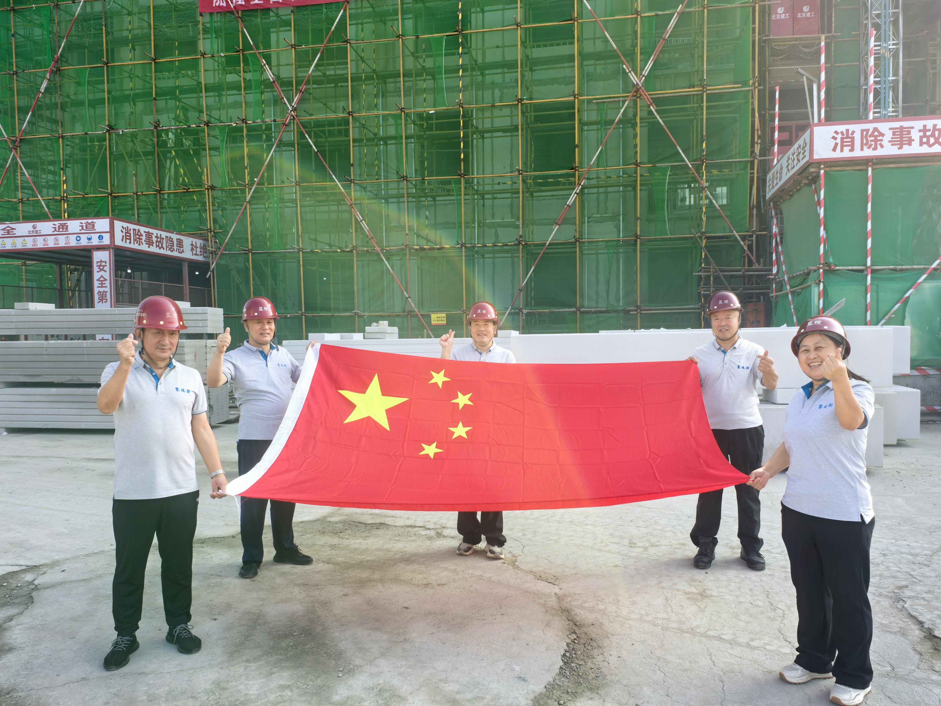 北京西红门御璟星城元启项目紧锣密鼓、如火如荼地进行之际,恰逢伟大祖国76年华诞,在项目上坚守岗位的监理人,五星红旗迎风展,盛世华诞共欢腾。红色信仰守底线,国旗昭昭映初心!项目部全体监理人员,祝愿伟大祖国繁荣富强、辉煌永续!