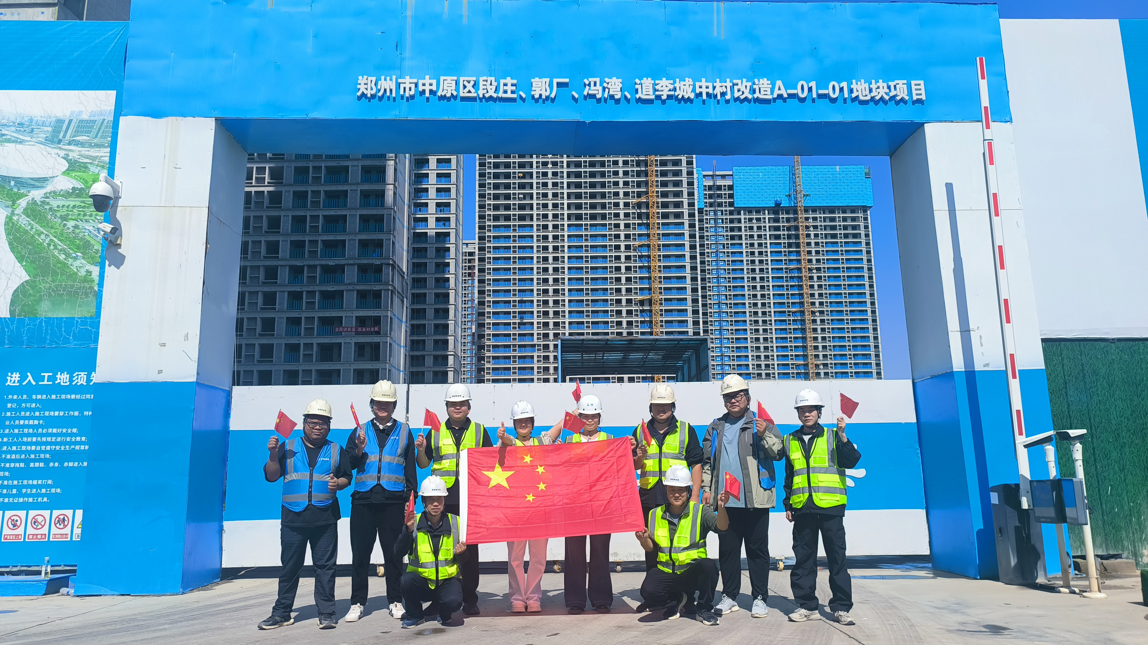 河南郑州市中原区段庄、郭厂、冯湾、道李城中村改造A-01-01地块项目的建设一线,以机械的轰鸣为乐章,以汗水浇筑未来。目前,项目已进入二次结构,外墙保温的关键阶段,全体建设者正全力以赴,用实干和担当为祖国生日献礼。祝愿伟大的祖国繁荣昌盛,国泰民安。