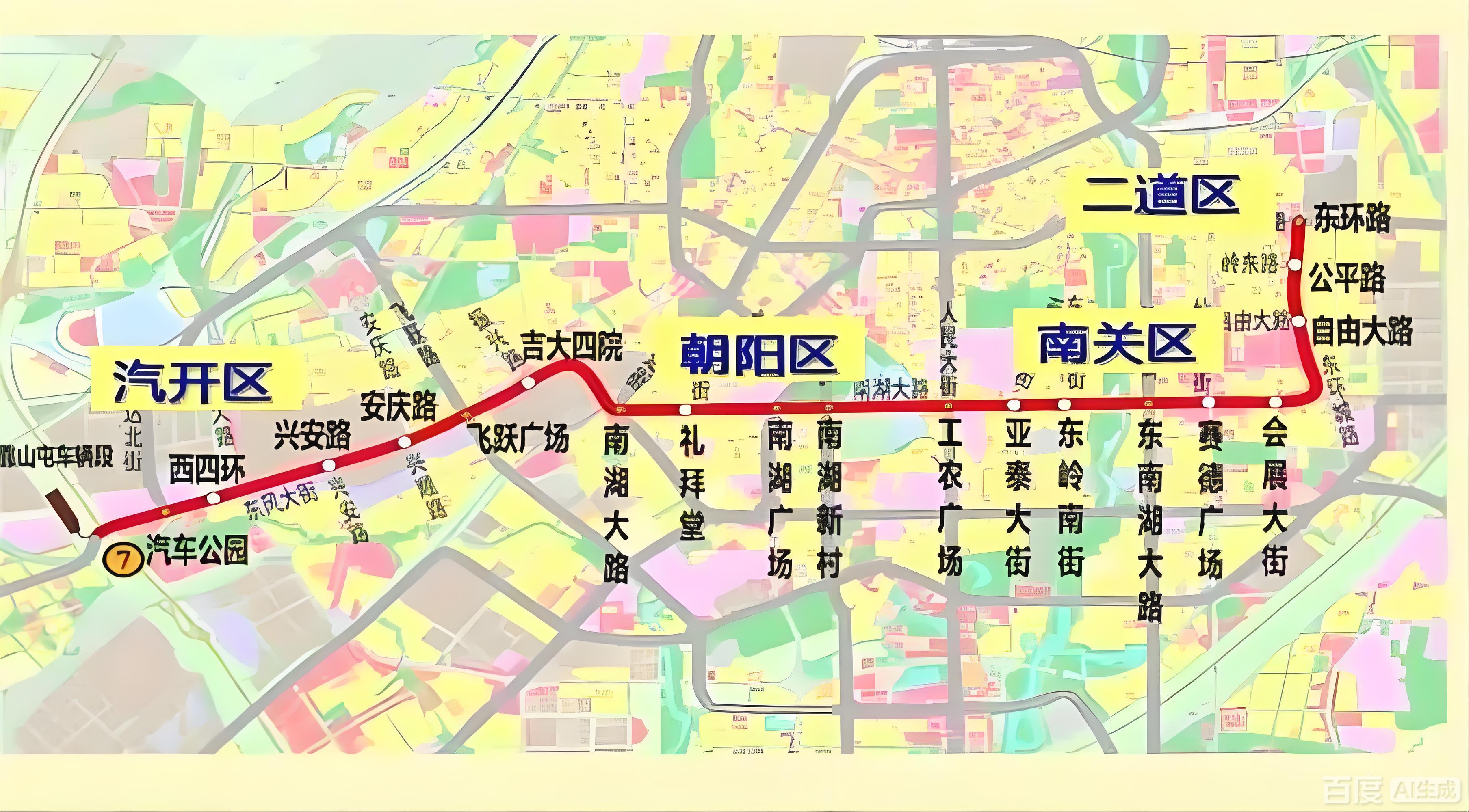 长春轨道交通7号线起于汽车公园站,终至东环城路站,线路沿东风大街、南湖大路、东环城路敷设。一期工程横跨汽开区、朝阳区、南关区、二道区四大核心区域。全线共设19座车站,其中包括8座换乘站,并在飞跃广场站与6号线设有联络线。项目建成后,将有效填补长春市西南至东北方向的轨道交通网络空白,加强沿线区域联动,显著提升市民出行效率。