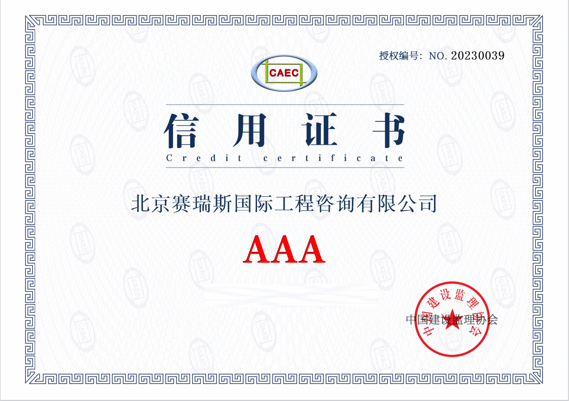 中国建设监理协会AAA信用证书