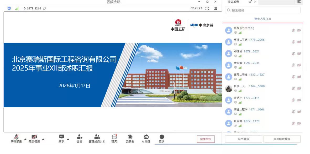 (造价事业部 孙冉冉)为全面总结2025年度部门工作成效,深刻剖析问题不足,科学谋划2026年工作蓝图,进一步凝聚团队共识、激发奋进力量,1月15日、16日,公司造价事业部召开2025年度年终述职会。
