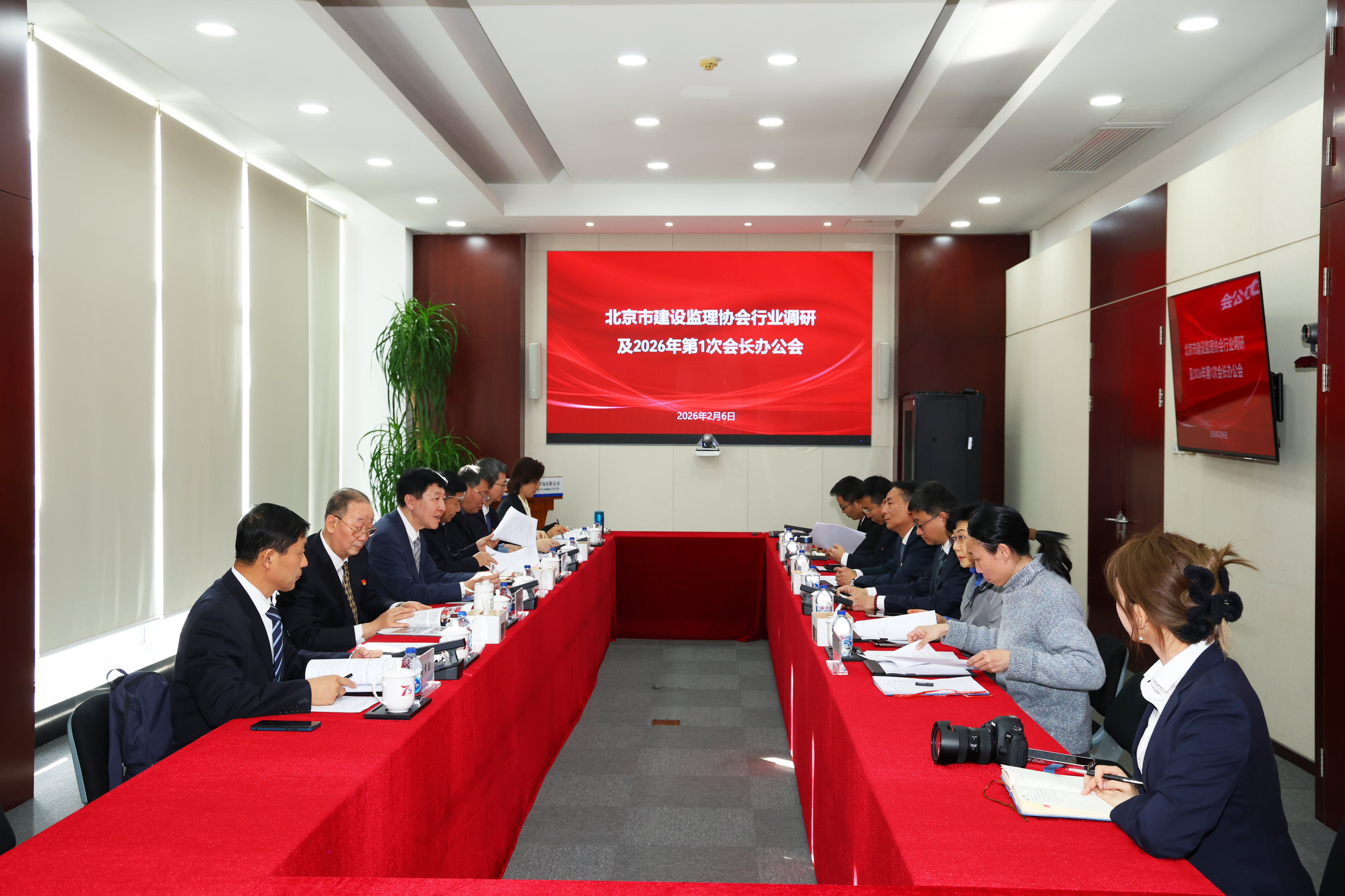 2月6日,北京市建设监理协会前往中冶京诚赛瑞斯开展行业调研活动并召开2026年度第一次会长办公会。赛瑞斯党委书记、总经理、协会副会长曹雪松与协会负责人共同参会。会长张铁明主持活动。