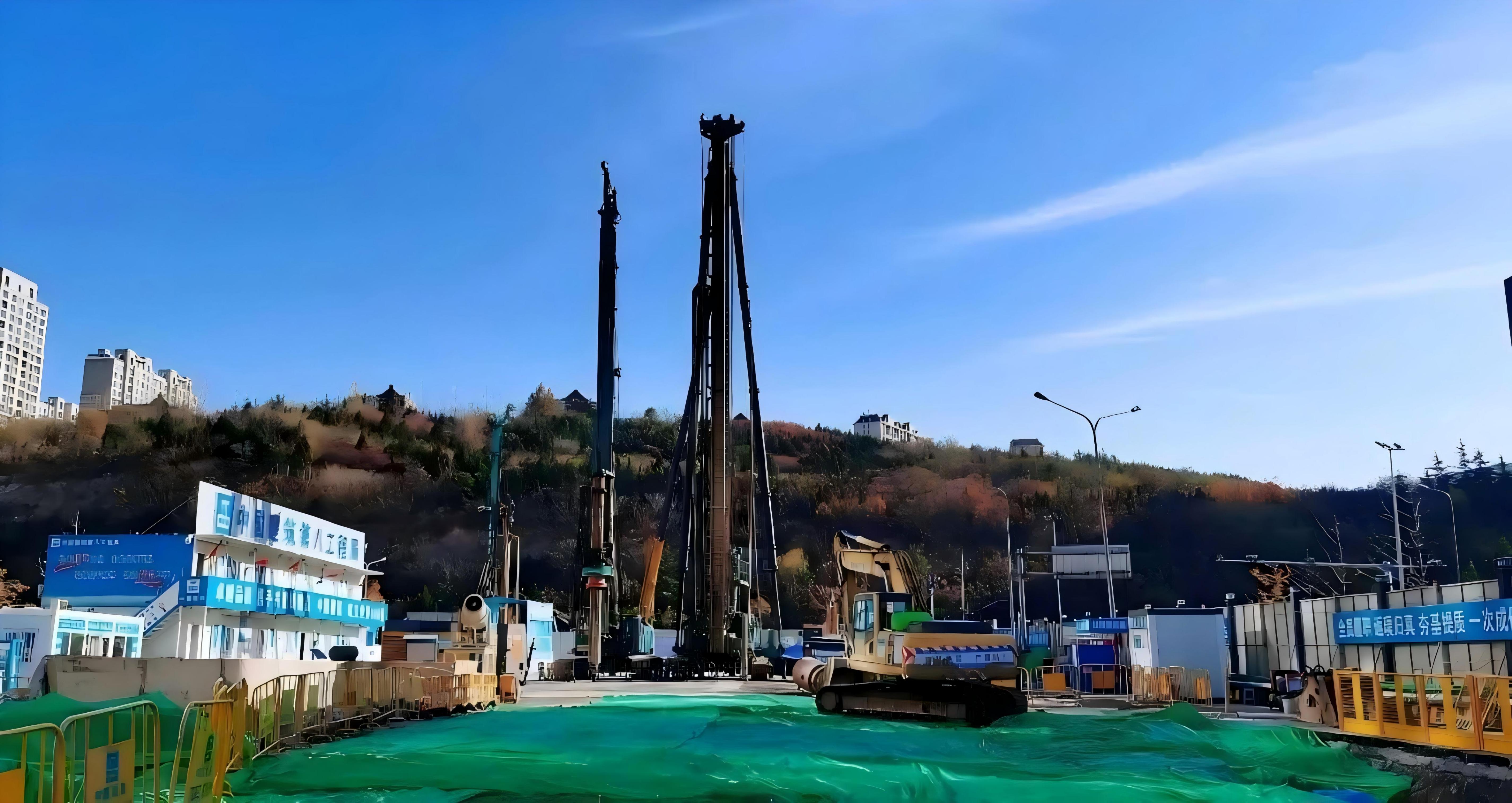 集束式反循环潜孔锤:奥体东路站地质条件复杂、岩石硬度高,传统旋挖钻施工方式产生的噪音大。项目创新采用双动力多功能钻机,配合集束式反循环潜孔锤施工工艺,有效解决了大直径潜孔锤高效率入岩的技术难题,实现动力足、噪音小、零沉渣。